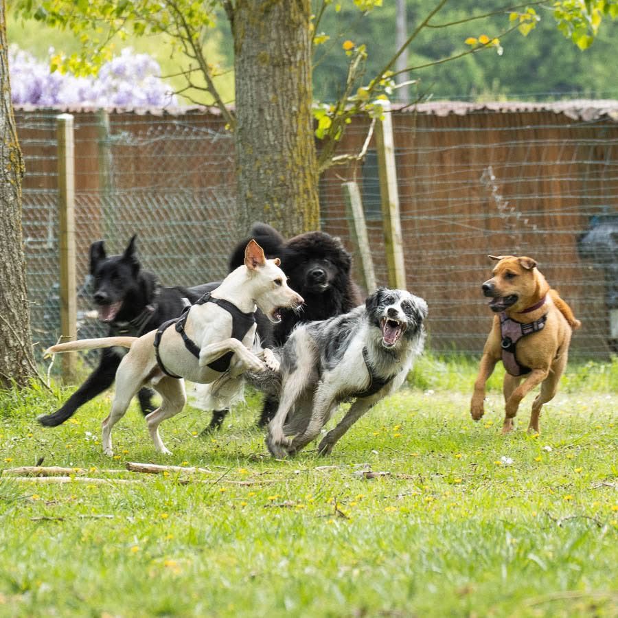 Un parc de 3000m2 entièrement clos avec tout ce qu'il faut pour s'amuser : piscine à balles, parcours complet d'agility, pataugeoire, bac à sable, et même une vraie piscine pour pouvoir nager !
